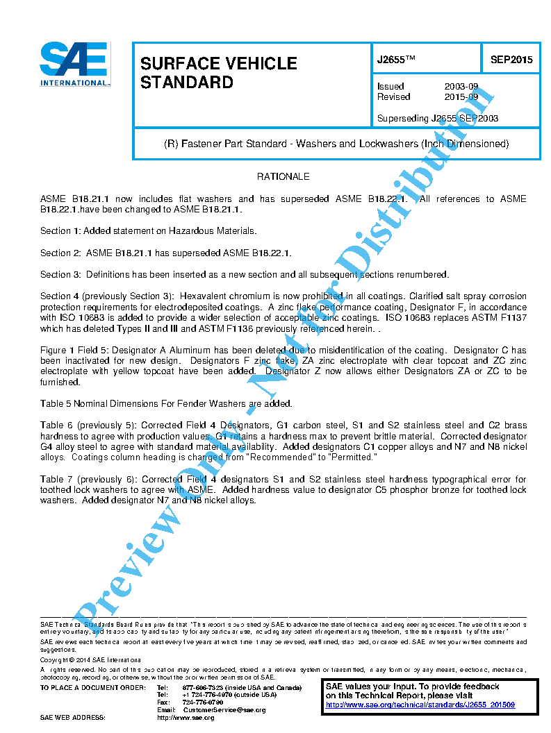 - Appendix C identifies other military and non-government standards for flat washers, helical and toothed lock washers. It identifies the materials covered by each standard with a comparison of those dimensions with those SAE J2655 washers.