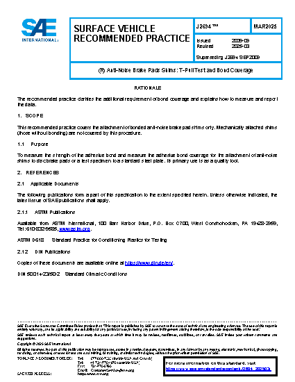 This recommended practice covers the attachment of bonded anti-noise brake pad shims only. Mechanically attached shims (those without bonding) are not covered by this procedure.