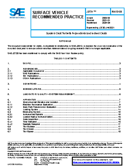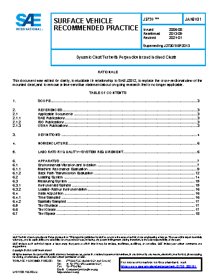 This SAE Recommended Practice describes a test method for measuring the forces and moments generated at a high frequency response spindle when a rolling tire impacts a cleat. The cleat is configured either with its crest perpendicular, 90 degrees, to the path of the tire or optionally with its crest inclined at an angle to the path of the tire. The carriage to which the spindle is attached is rigidly constrained in position during each test condition to provide a good approximation to fixed loaded radius operation. The method discussed in this document provides impact force and moment time histories essentially free from variations due to tire non-uniformities. The method applies to any size tire so long as the equipment is properly scaled to conduct the measurements for the intended test tire. The data are suitable for use in determining parameters for road load models and for comparative evaluations of the measured properties in research and development.
