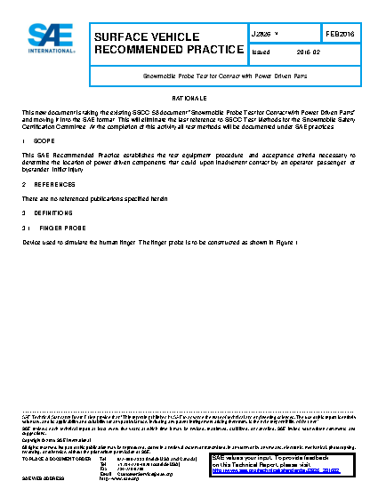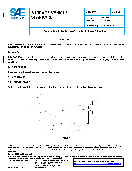 This SAE Standard establishes the test equipment, procedure, and acceptance criteria necessary to determine the location of power driven components that could—upon inadvertent contact by an operator, passenger, or bystander—inflict injury.