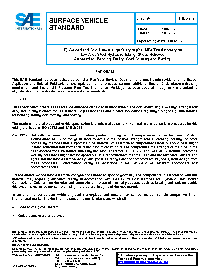 This specification covers stress relieved annealed electric resistance welded and cold-drawn single-wall high strength low alloy steel tubing intended for use in hydraulic pressure lines and in other applications requiring tubing of a quality suitable for bending, flaring, cold forming, and brazing.