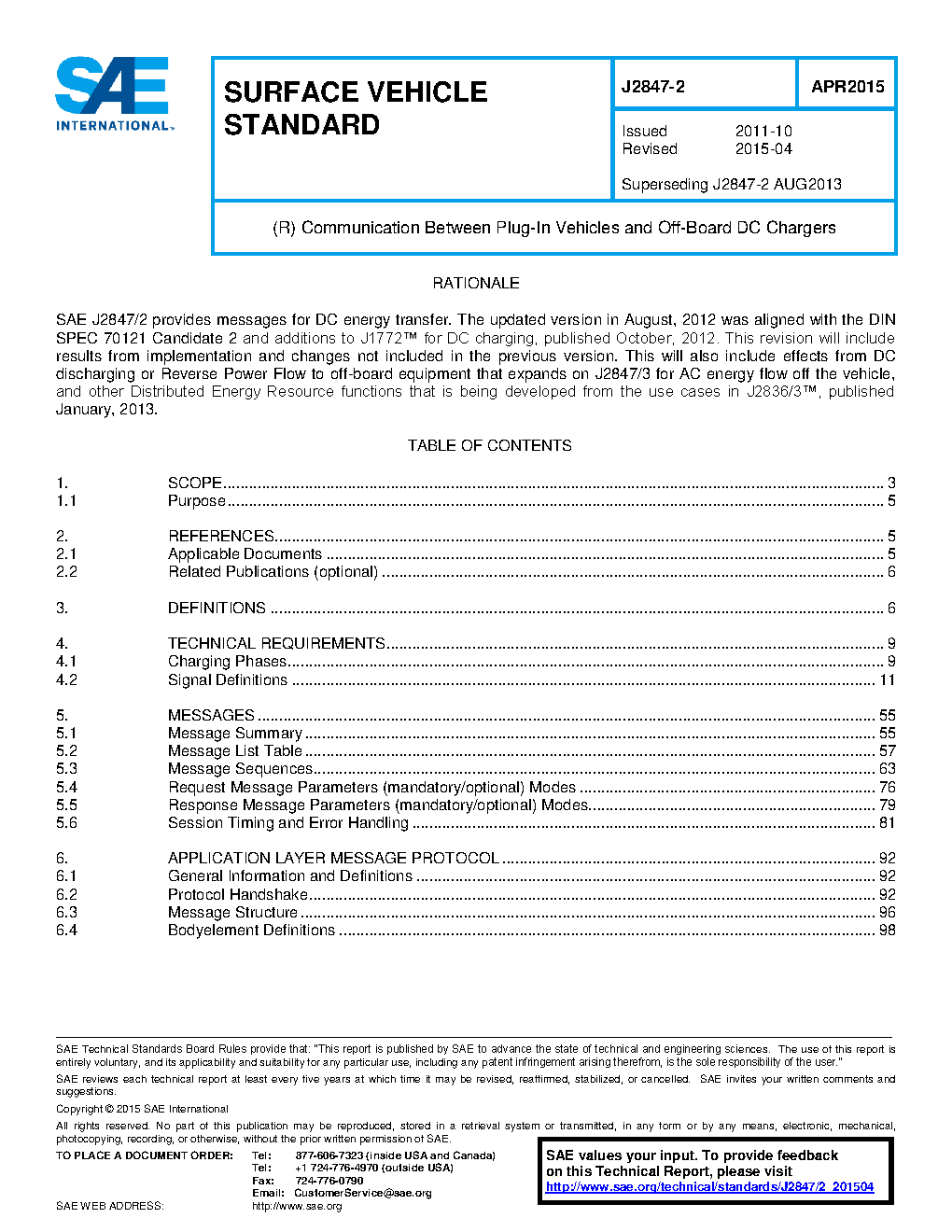 - SAE J2847/2 then transforms these use case requirements into the signals and messages.