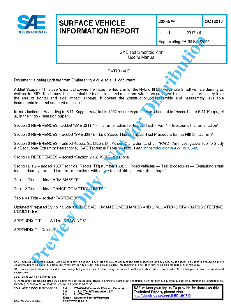 This user’s manual covers the instrumented arm for the Hybrid III 5th Percentile Small Female dummy as well as the SID –IIs dummy. It is intended for technicians and engineers who have an interest in assessing arm injury from the use of frontal and side impact airbags. It covers the construction, disassembly and reassembly, available instrumentation, and segment masses.