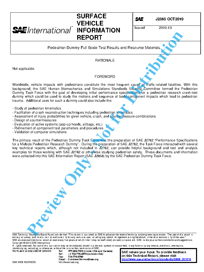 The materials included in this J document are not intended to represent a complete summary of pedestrian safety research activities, but are rather a collection of materials which can be helpful to users of SAE J2782.