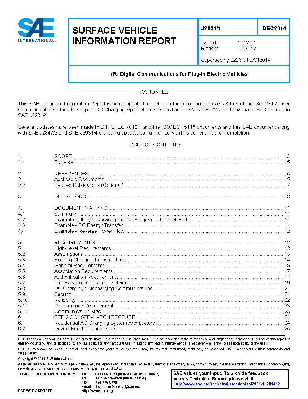 - This document, SAE J2931/1, defines architecture and general requirements including association, registration, security, and HAN requirements, as well as mapping to other SAE documents.