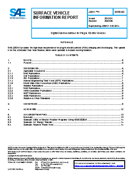 The document mapping of the PEV communication standards are further defined in Section 5.
