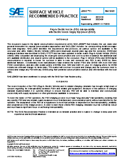 Plug-In Electric Vehicle (PEV) Interoperability with Electric Vehicle Supply Equipment (EVSE)