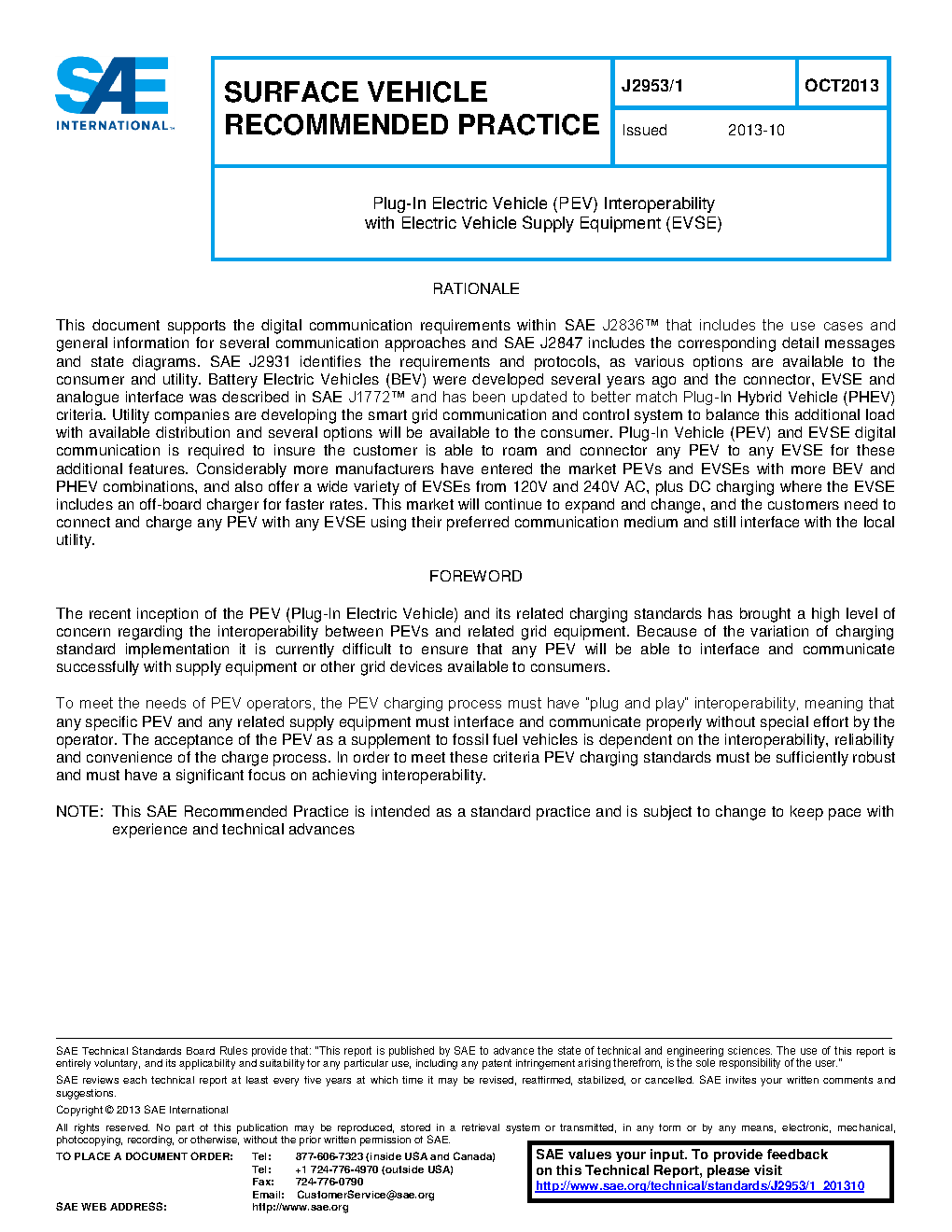 This SAE Recommended Practice J2953/1 establishes requirements and specification by which a specific Plug-In Electric Vehicle (PEV) and Electric Vehicle Supply Equipment (EVSE) pair can be considered interoperable. The test procedures are further described in J2953/2.