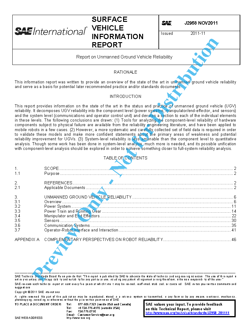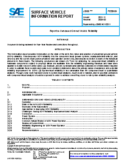 This information report is applicable to the reliability characteristics of unmanned ground vehicles.