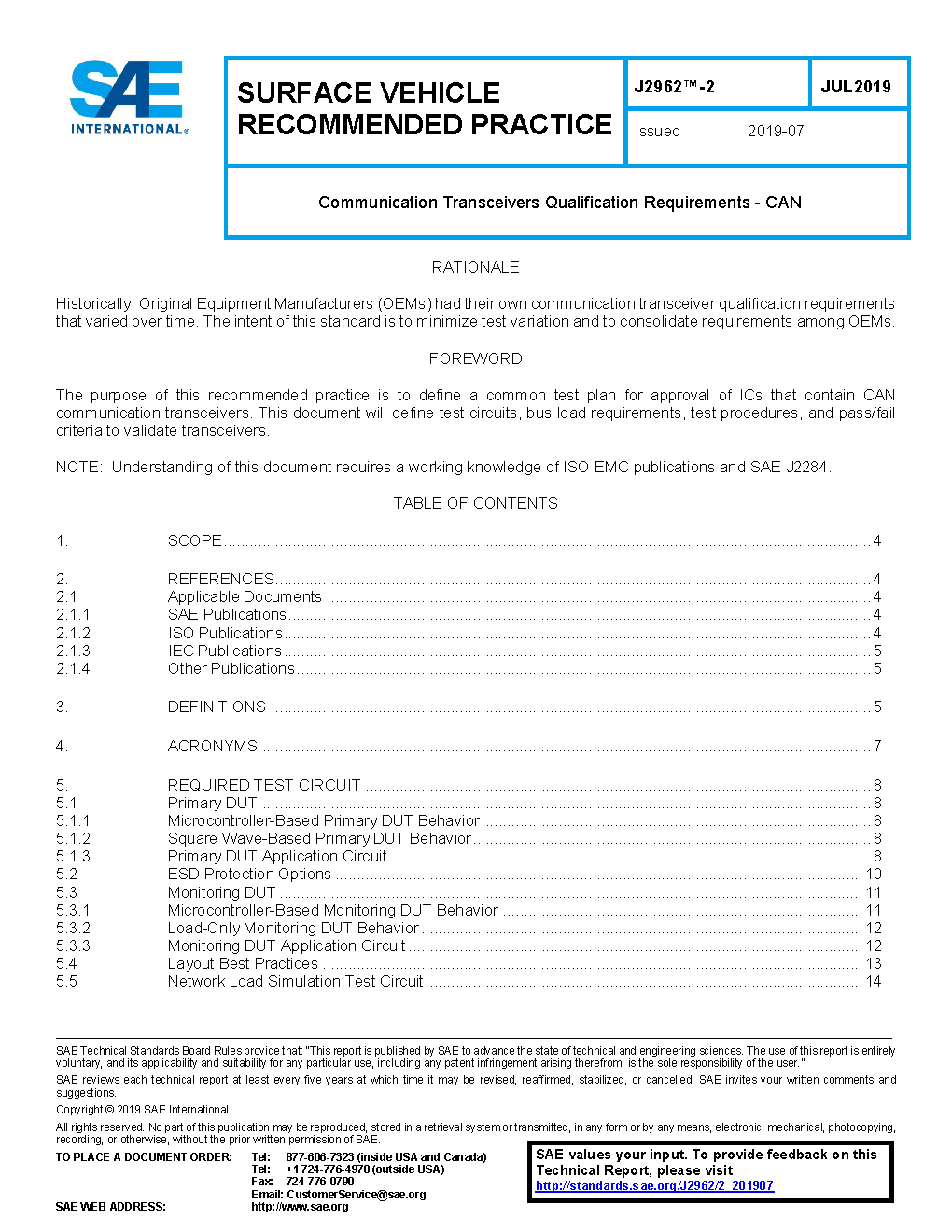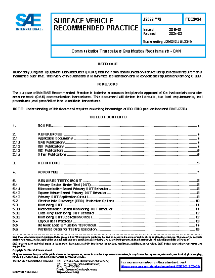 The goal of SAE J2962-2 is to commonize approval processes of CAN transceivers across OEMs.