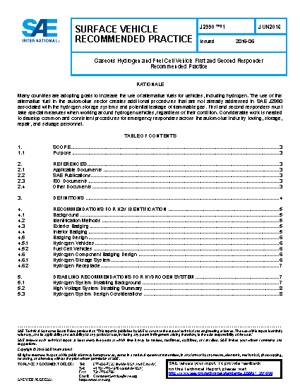 The electrical hazards associated with the high voltage systems of hybrid-electric vehicles and FCVs are already addressed in the parent document, SAE J2990. This Recommended Practice therefore addresses electric issues by reference to SAE J2990 and supplements SAE J2990 to address the potential consequences associated with hydrogen vehicle incidents and suggest common procedures to help protect emergency responders, tow and/or recovery, storage, repair, and salvage personnel after an incident has occurred. Industry design standards and tools were studied and where appropriate, suggested for responsible organizations to implement.