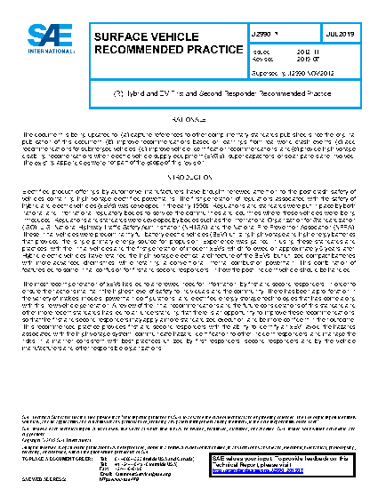 xEVs involved in incidents present unique hazards associated with the high voltage system (including the battery system). These hazards can be grouped into three categories: chemical, electrical, and thermal. The potential consequences can vary depending on the size, configuration, and specific battery chemistry. Other incidents may arise from secondary events such as garage fires and floods. These types of incidents are also considered in the recommended practice (RP). This RP aims to describe the potential consequences associated with hazards from xEVs and suggest common procedures to help protect emergency responders, tow and/or recovery, storage, repair, and salvage personnel after an incident has occurred with an electrified vehicle. Industry design standards and tools were studied and where appropriate, suggested for responsible organizations to implement.