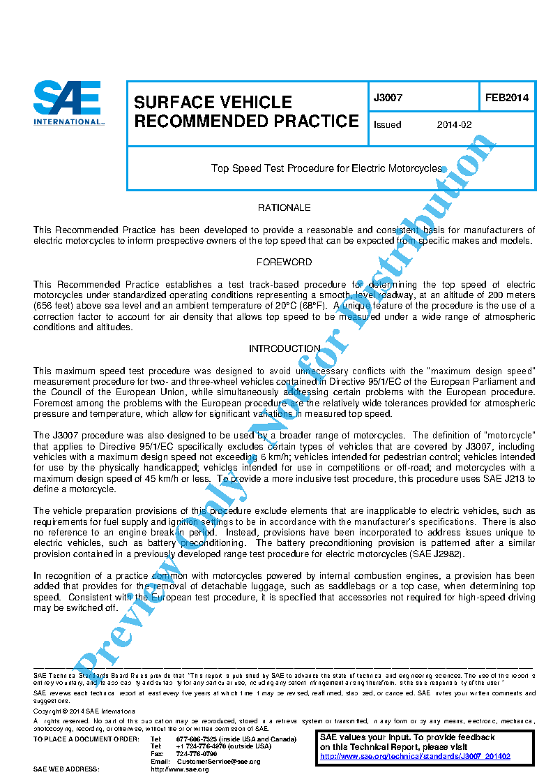 This SAE Recommended Practice incorporates a track-based test procedure that produces a representative value for vehicle top speed when operating on a level paved road with a fully charged battery.