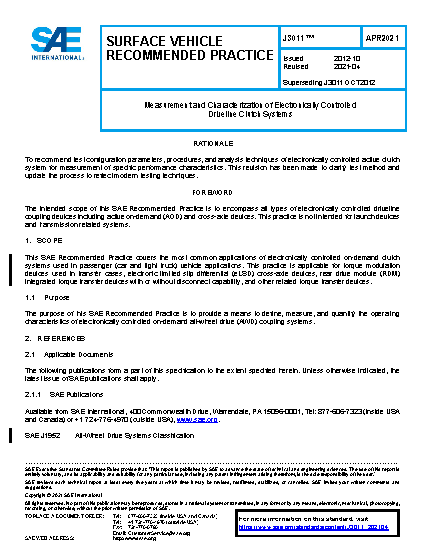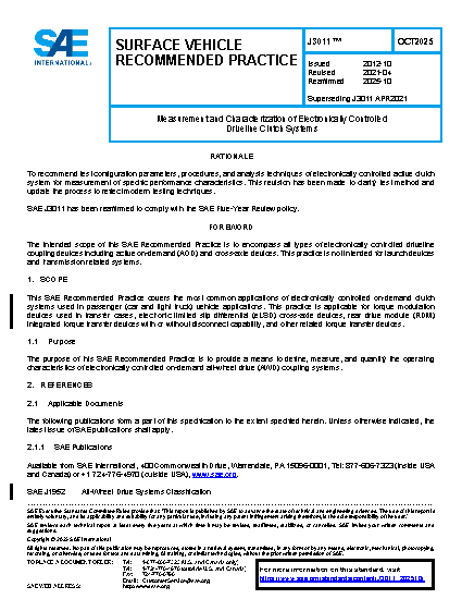 This SAE Recommended Practice covers the most common applications of electronically controlled on-demand clutch systems used in passenger (car and light truck) vehicle applications. This practice is applicable for torque modulation devices used in transfer cases, electronic limited slip differential (eLSD) cross-axle devices, rear drive module (RDM) integrated torque transfer devices with or without disconnect capability, and other related torque transfer devices.