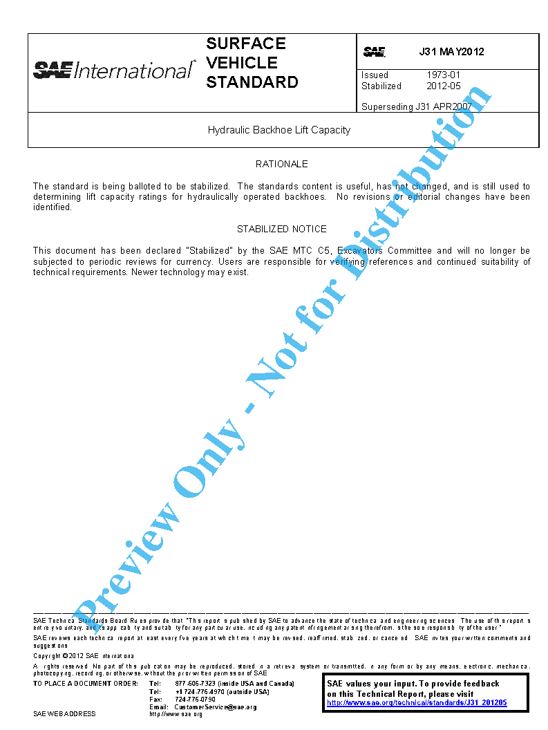 This standard describes a uniform "over end" and "full swing arc" lifting capacity rating for backhoes. It is based on the actual capacity of the machine to lift and support a load under stable conditions.