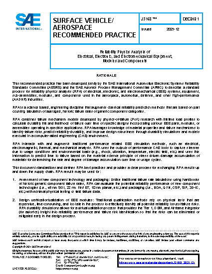 This recommended practice has been developed for use in any EEE system used in the AADHP industries. RPA is especially important to AADHP systems, which are often safety critical applications that must operate for long times in rugged environments. These EEE systems often use EEE components that were originally designed and produced for more benign consumer applications.
