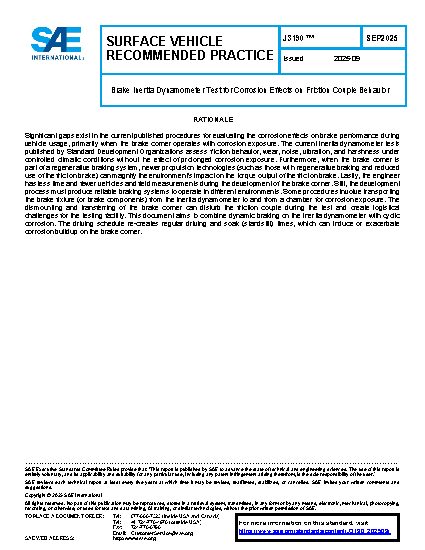 This document derives from combining the driving cycle from the European Commission’s Worldwide harmonized Light Vehicle Test Procedure (WLTP-Brake cycle) and cyclic corrosion with humidity, temperature, and salt spray from SAE J2334. This document applies to vehicles with an internal combustion engine, a rechargeable energy storage system, or both as a source for propulsion. These cycles apply to passenger and light-duty vehicles with a Gross Vehicle Weight Rating of 3500 kg or below. Before using this document for other vehicle categories, the test requestor shall assess with the test facility the WLTP’s applicability, which applies to vehicles category 1-1 (carriage of persons with not more than eight seating positions in addition to the driver) and category 2 (carriage of goods) with a fully laden mass of 3500 kg or below.