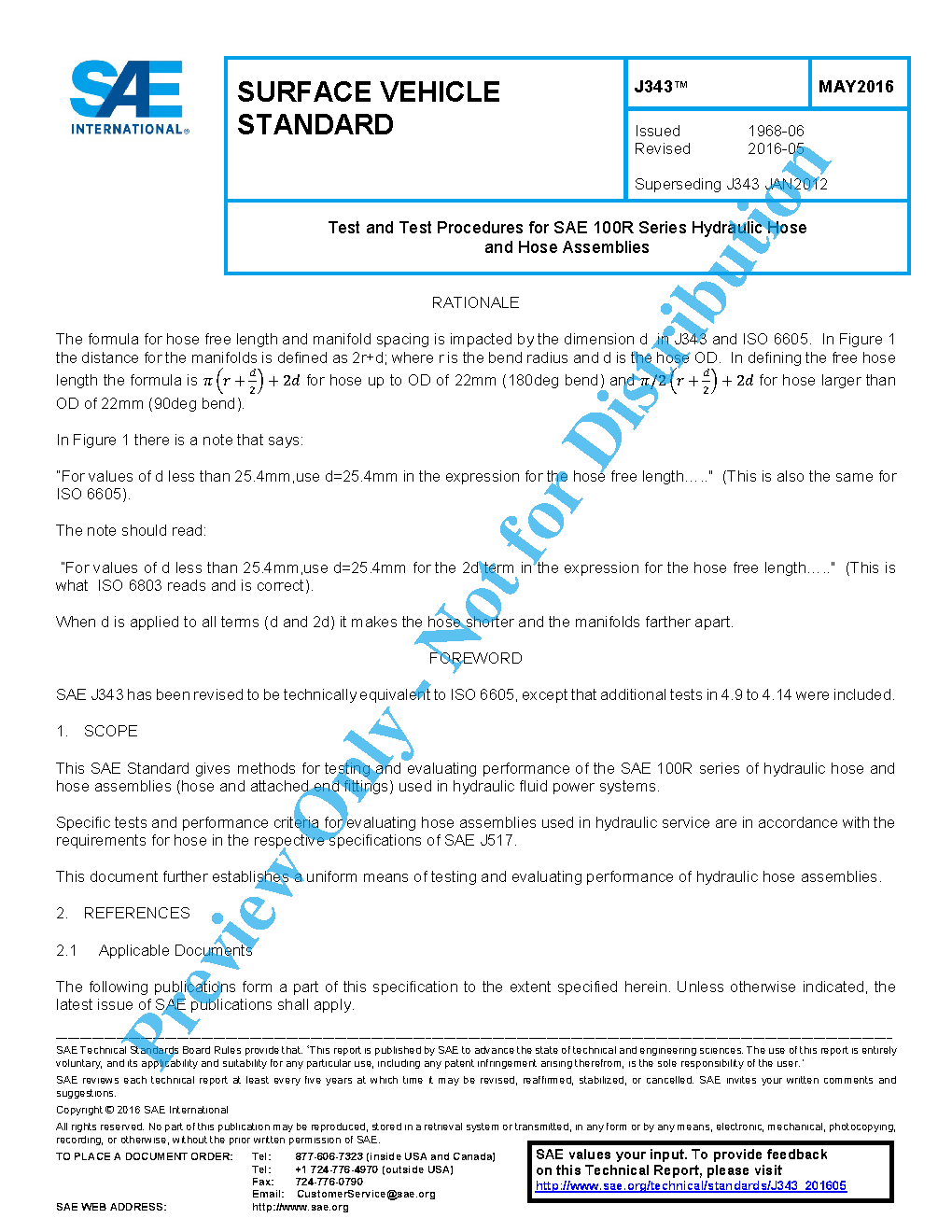 This document further establishes a uniform means of testing and evaluating performance of hydraulic hose assemblies.