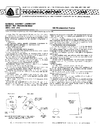 This SAE Recommended Practice describes a laboratory test procedure for evaluating the head impact characteristics of such areas of an automotive seatback assembly as may be required to meet impact performance established for the protection of lap-belted occupants.