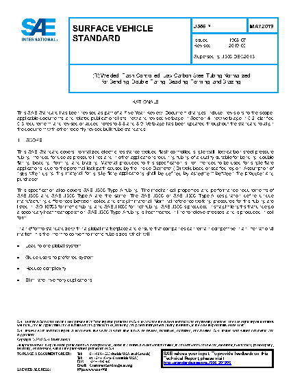 This SAE Standard covers normalized electric-resistance welded flash-controlled single-wall, low-carbon steel pressure tubing intended for use as pressure lines and in other applications requiring tubing of a quality suitable for bending, double flaring, beading, forming, and brazing. Material produced to this specification is not intended to be used for single flare applications, due to the potential leak path caused by the Inside Diameter (ID) weld bead or scarfed region. Assumption of risks when using this material for single flare applications shall be defined by agreement between the producer and purchaser.