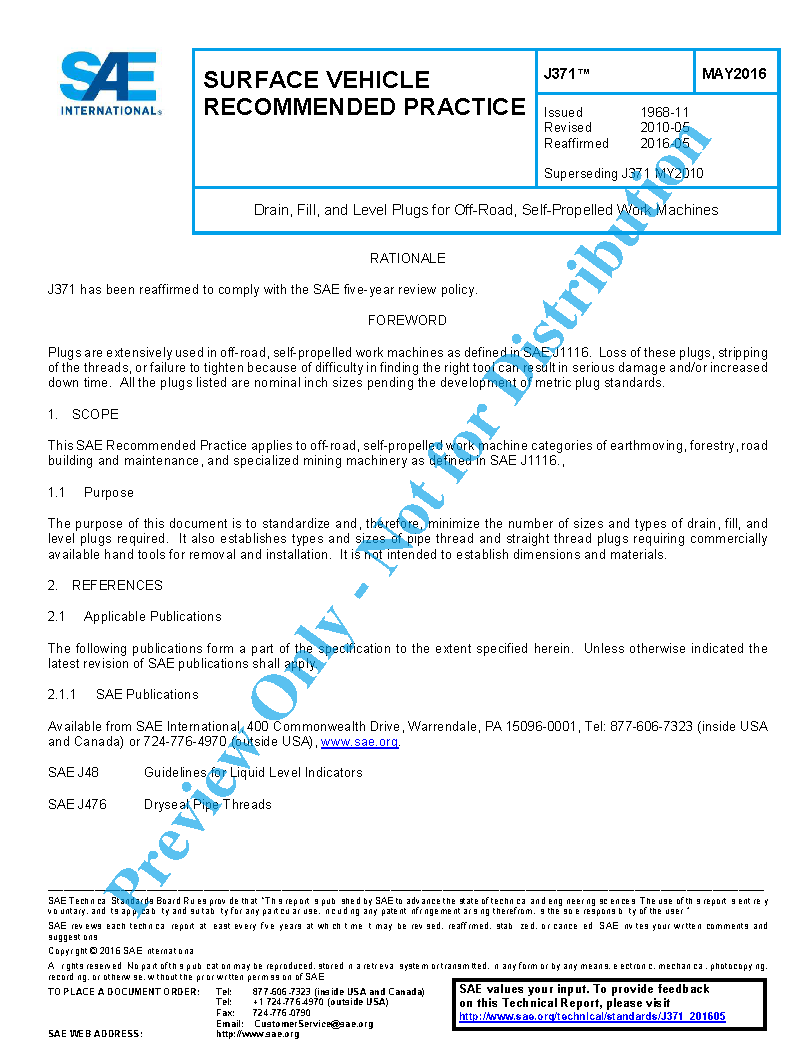 Drain, Fill, and Level Plugs for Off-Road, Self-Propelled Work Machines (Stabilized: Jan 2025)