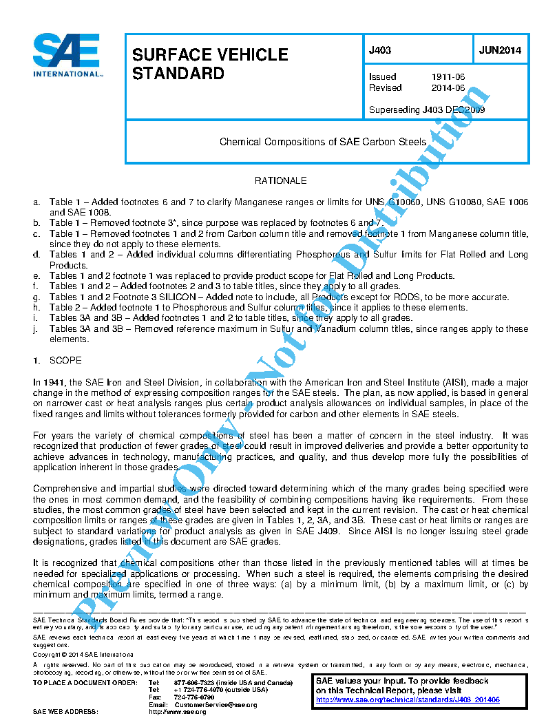 Comprehensive and impartial studies were directed toward determining which of the many grades being specified were the ones in most common demand, and the feasibility of combining compositions having like requirements. From these studies, the most common grades of steel have been selected and kept in the current revision. The cast or heat chemical composition limits or ranges of these grades are given in Tables 1, 2, 3A, and 3B. These cast or heat limits or ranges are subject to standard variations for product analysis as given in SAE J409. Since AISI is no longer issuing steel grade designations, grades listed in this document are SAE grades.