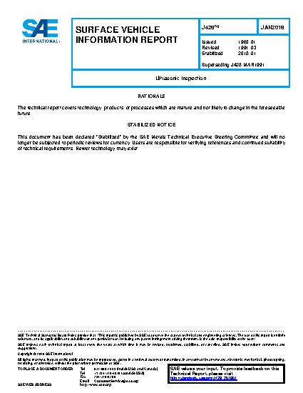 The scope of this SAE Information report is to provide basic information on ultrasonics, as applied in the field of nondestructive inspection. References to detailed information are listed in Section 2.