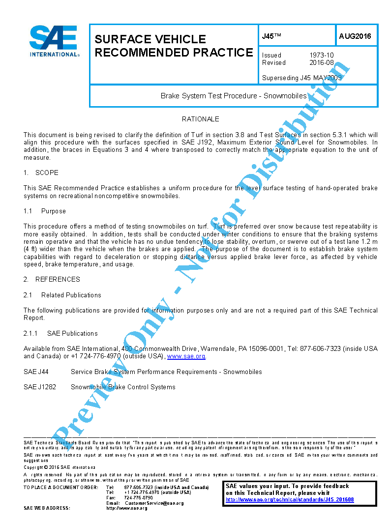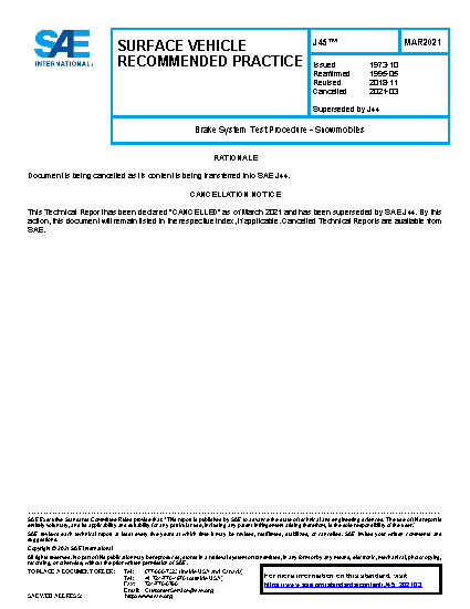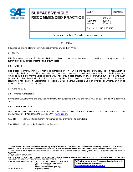 This SAE Recommended Practice establishes a uniform procedure for the level surface testing of hand-operated brake systems on recreational noncompetitive snowmobiles.