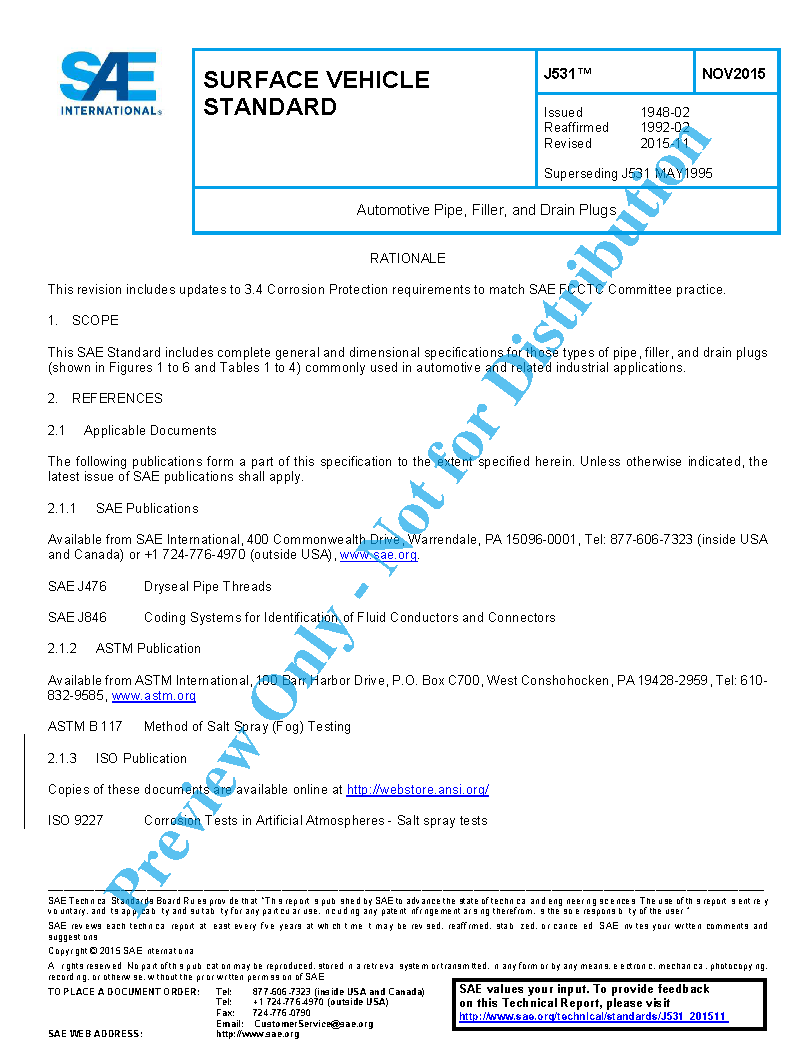This SAE Standard includes complete general and dimensional specifications for those types of pipe, filler, and drain plugs (shown in Figures 1 to 6 and Tables 1 to 4) commonly used in automotive and related industrial applications.