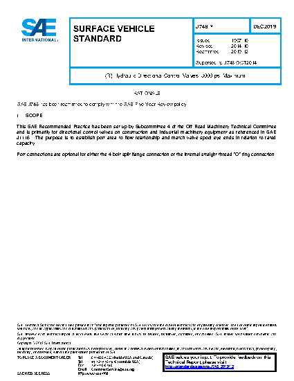 This SAE Standard has been set up by Subcommittee 4 of the Off-Road Machinery Technical Committee and is primarily for directional control valves on construction and industrial machinery equipment as referenced in SAE J1116. The purpose is to establish port area to flow relationship and match valve spool eye ends in relation to rated capacity.