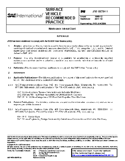 Instructions on this chart are intended to be used as a ready reference by personnel responsible for servicing off-road self-propelled work machines described in SAE J1116, categories 1, 2, 3, and 4. Detailed maintenance and service guidelines are reserved for maintenance, operator, and lubrication manuals as defined in SAE J920.