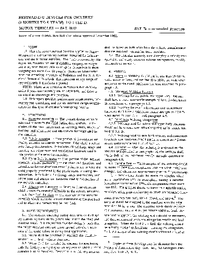 This SAE Recommended Practice applies to single-occupancy child-restraining devices, intended for installation and use in motor vehicles. The devices covered by this report are intended for use of children, ranging, in weight and size, from infants able to sit up by themselves to those weighing not more than 50 pounds. (Based on information from the American Academy of Pediatrics and the U. S. National Bureau of Standards, this represents an age range of approximately 8 months to 6 years.)