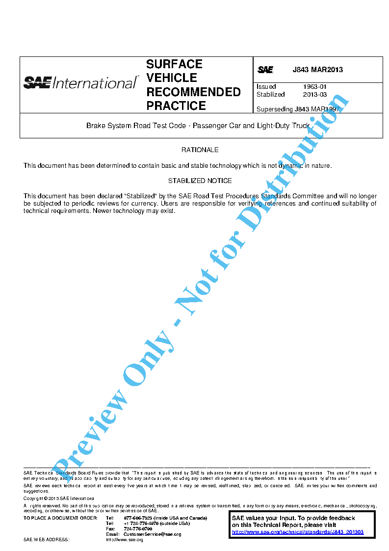 Brake System Road Test Code - Passenger Car and Light-Duty Truck (Stabilized: Mar 2013)