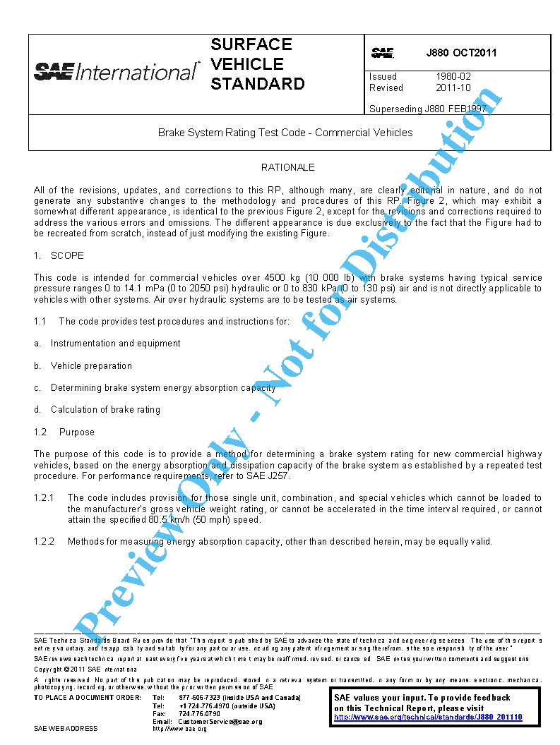 This code is intended for commercial vehicles over 4500 kg (10 000 lb) with brake systems having typical service pressure ranges 0 to 14.1 mPa (0 to 2050 psi) hydraulic or 0 to 830 kPa (0 to 130 psi) air and is not directly applicable to vehicles with other systems. Air over hydraulic systems are to be tested as air systems.