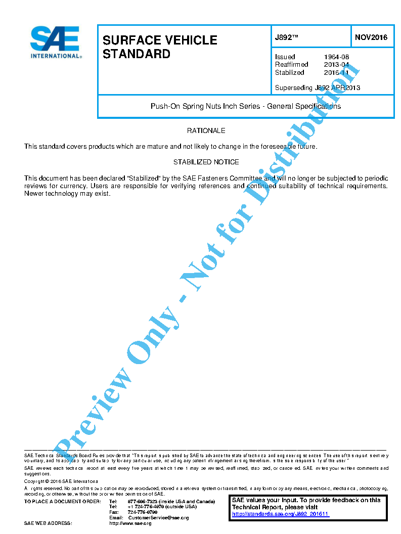 Push-On Spring Nuts Inch Series - General Specifications (Stabilized: Nov 2016)
