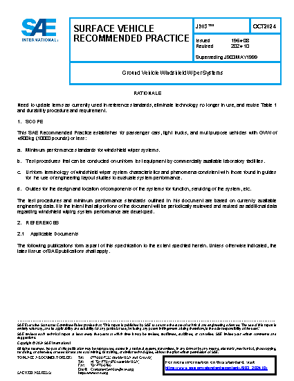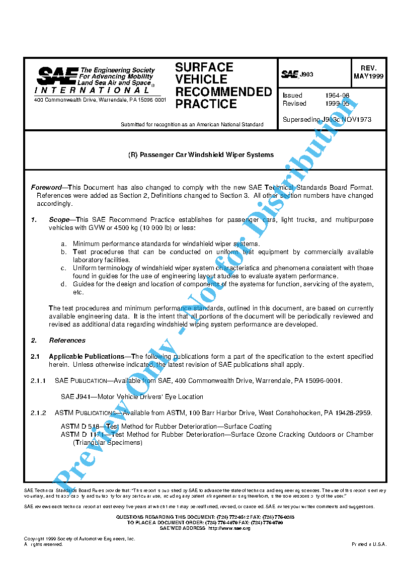 The test procedures and minimum performance standards outlined in this document are based on currently available engineering data. It is the intent that all portions of the document will be periodically reviewed and revised as additional data regarding windshield wiping system performance are developed.