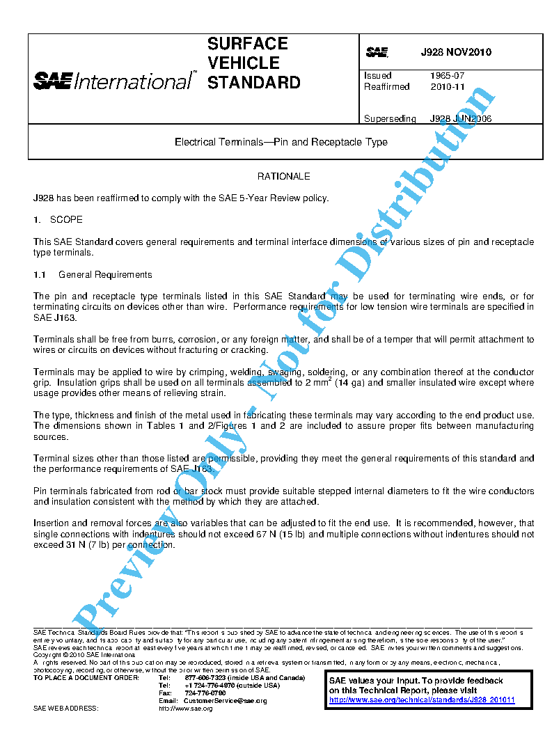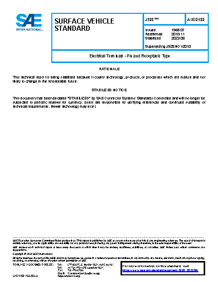 This SAE Standard covers general requirements and terminal interface dimensions of various sizes of pin and receptacle type terminals.