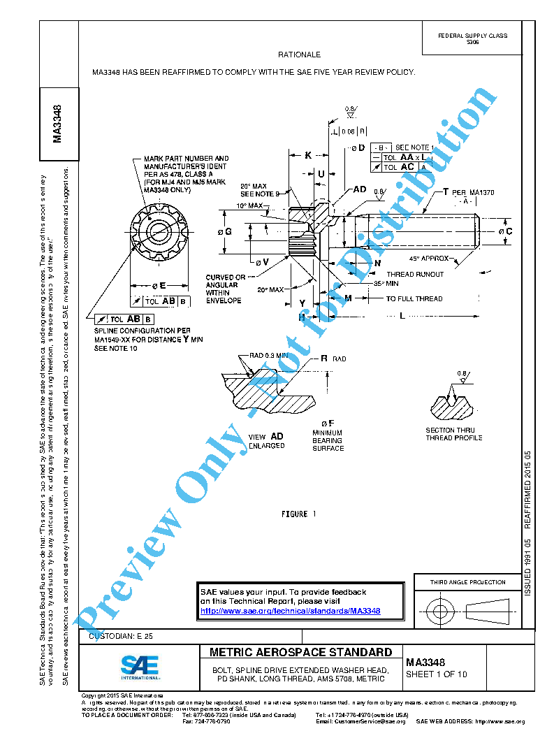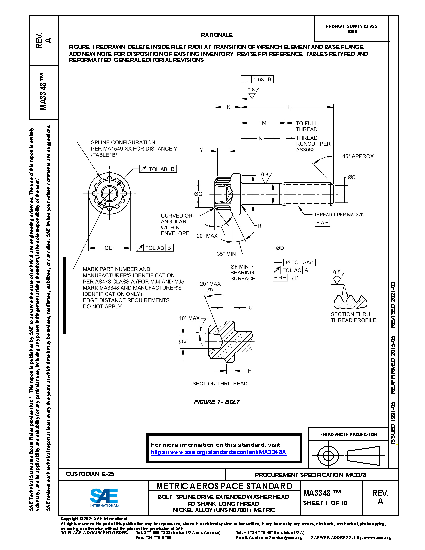 BOLT, SPLINE DRIVE EXTENDED WASHER HEAD, PD SHANK, LONG THREAD, NICKEL ALLOY (UNS N07001), METRIC