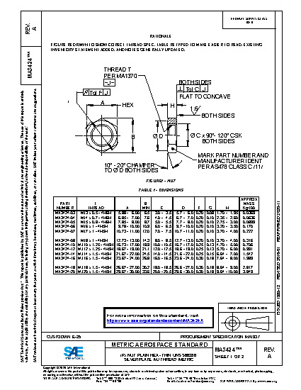 NUT, PLAIN HEX - THIN, UNS S66286, SILVER PLATE, MJ THREAD, METRIC