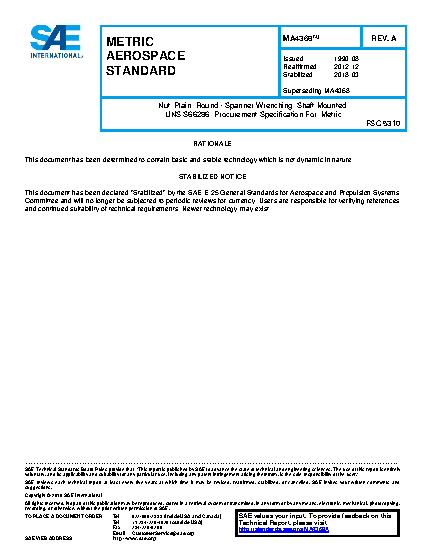 Nut, Plain, Round - Spanner Wrenching, Shaft Mounted, UNS S66286, Procurement Specification For, Metric (Stabilized: Mar 2018)