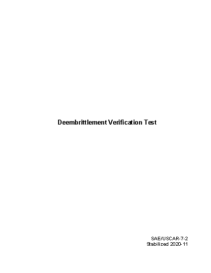 This standard outlines test methods and practices which can detect embrittlement of steel parts. It is a process control or referee verification test. The risk of embrittlement of steel is minimized by using best practices in the finishing/coating process. One such practice is described in SAE/USCAR-5, Avoidance of Hydrogen Embrittlement of Steel.