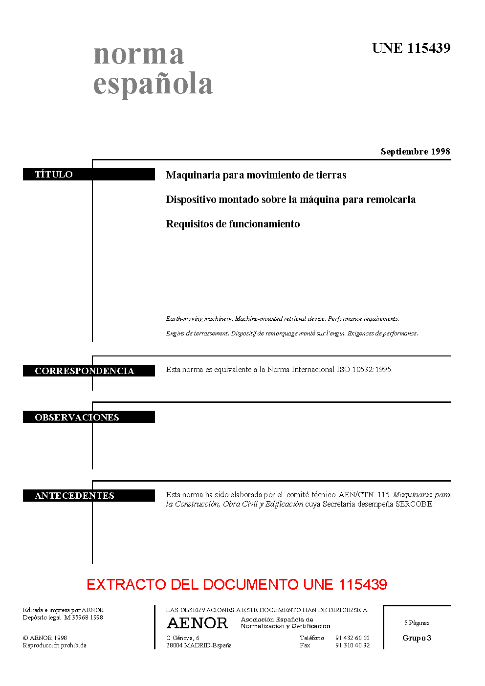 UNE 115439:1998 (R2021)