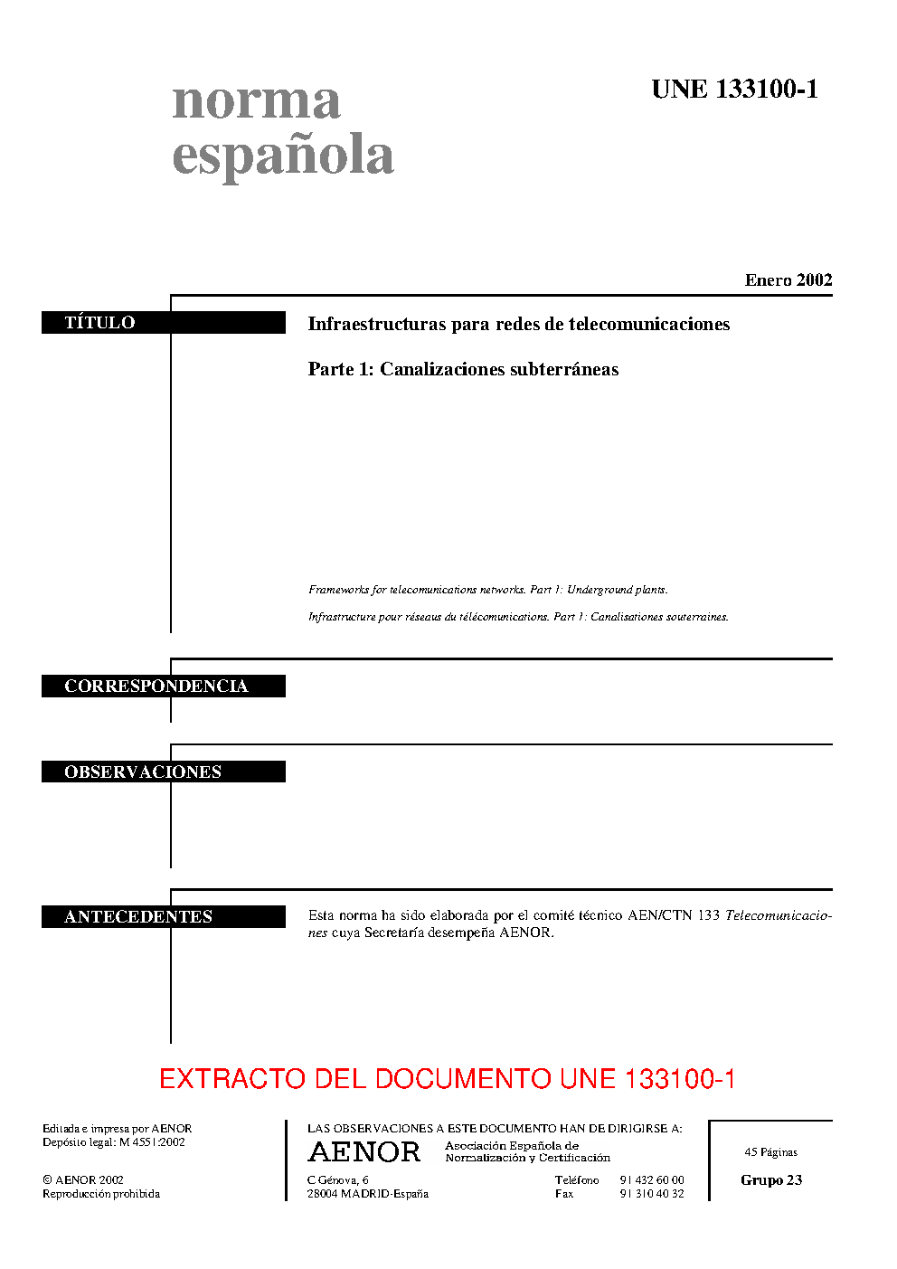Frameworks for telecomunications networks. Part 1: Underground plants.