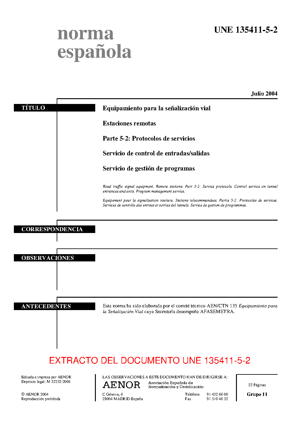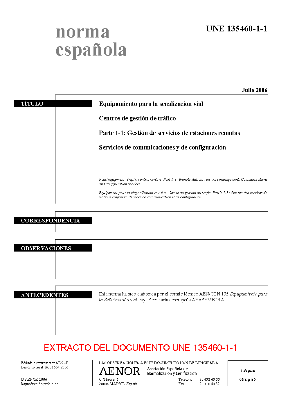 | Publisher | Asociacion Espanola de Normalizacion y Certificacion (AENOR) |
