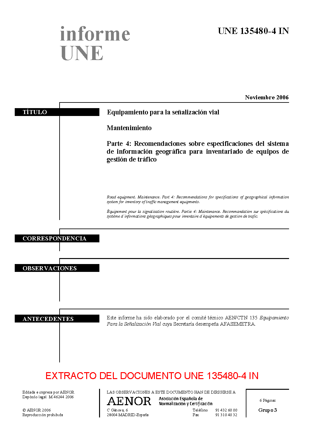 | Publisher | Asociacion Espanola de Normalizacion y Certificacion (AENOR) |