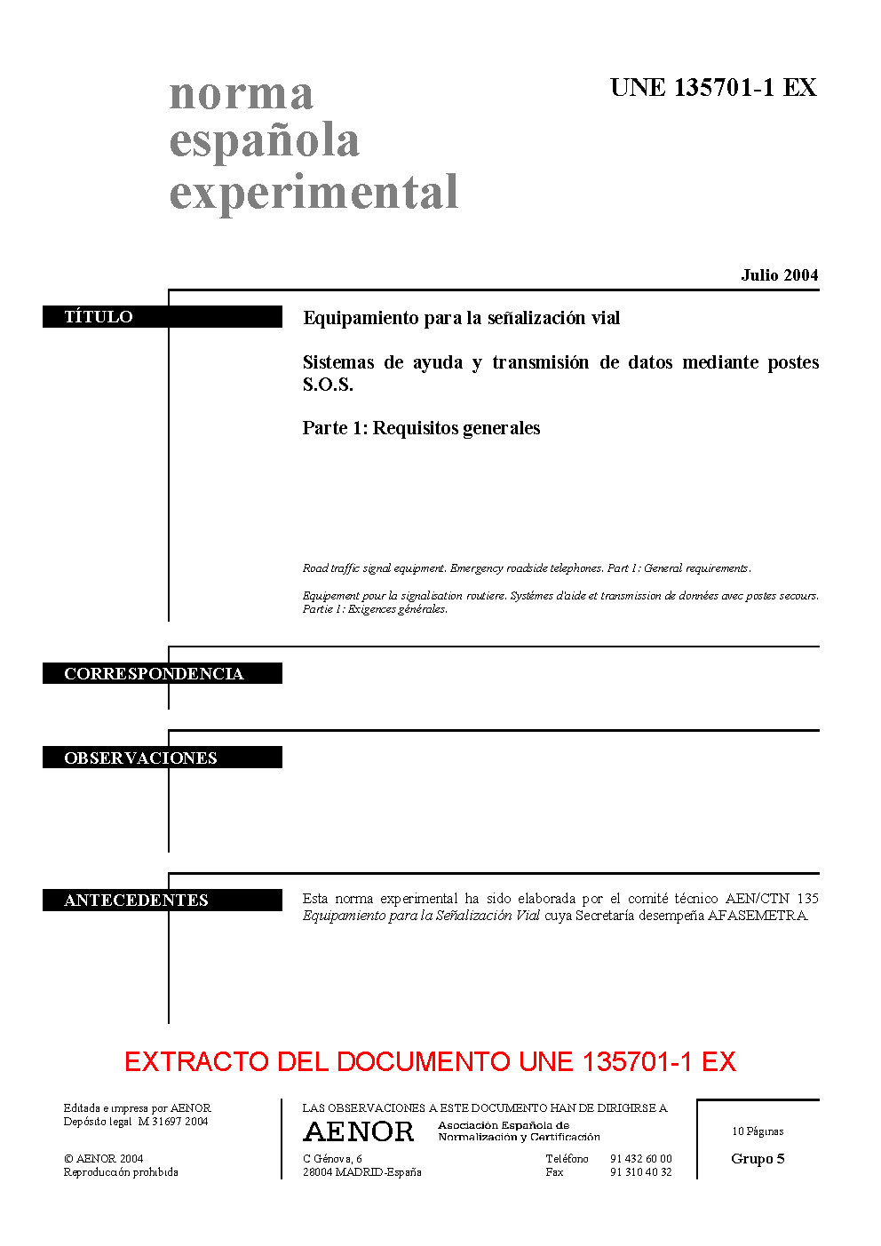 | Publisher | Asociacion Espanola de Normalizacion y Certificacion (AENOR) |