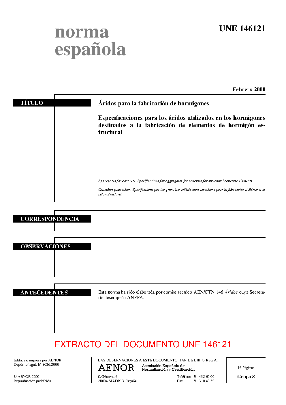 | Publisher | Asociacion Espanola de Normalizacion y Certificacion (AENOR) |