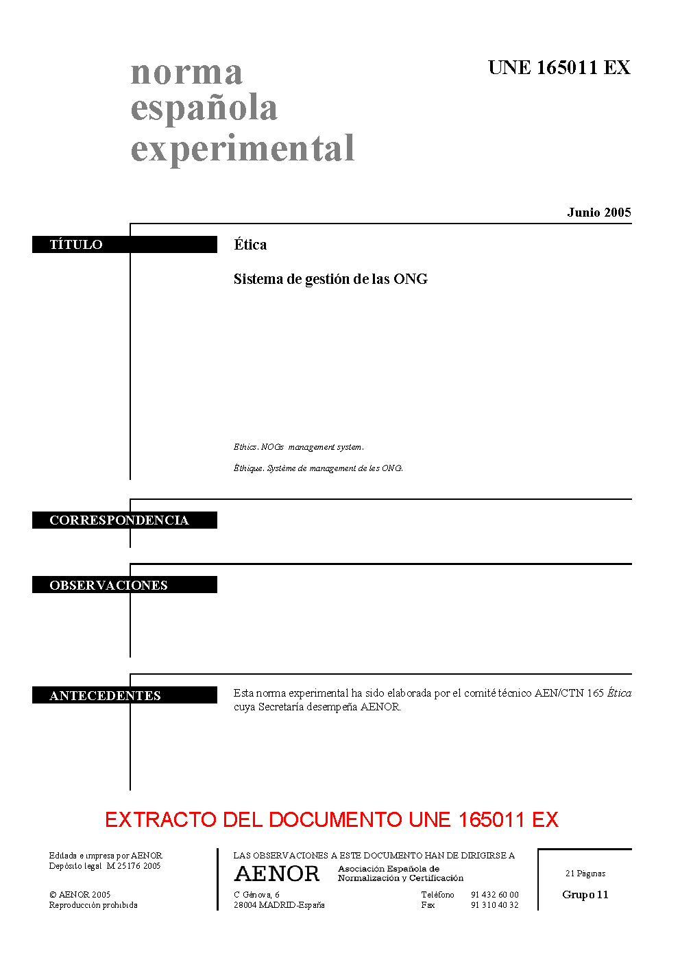 | Publisher | Asociacion Espanola de Normalizacion y Certificacion (AENOR) |
