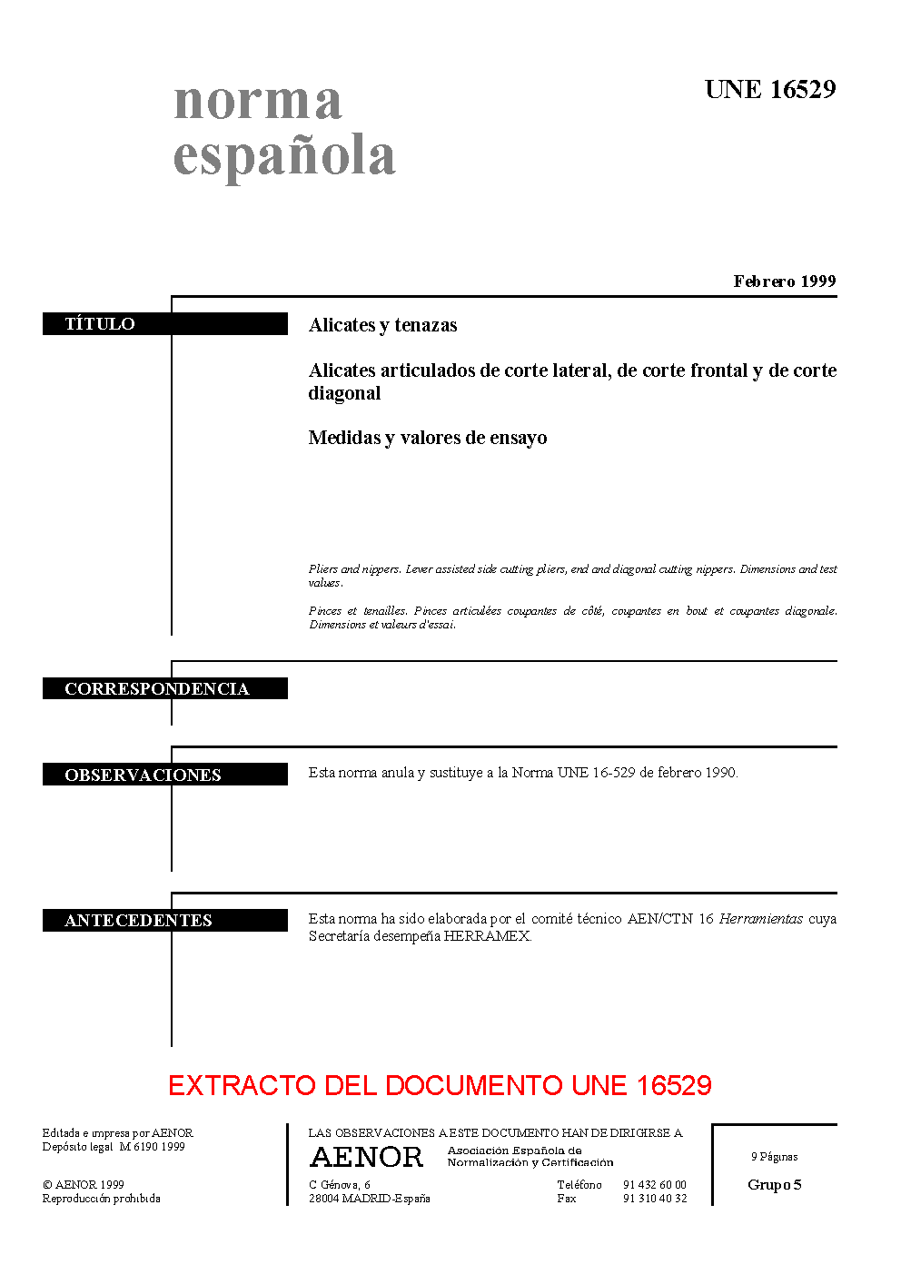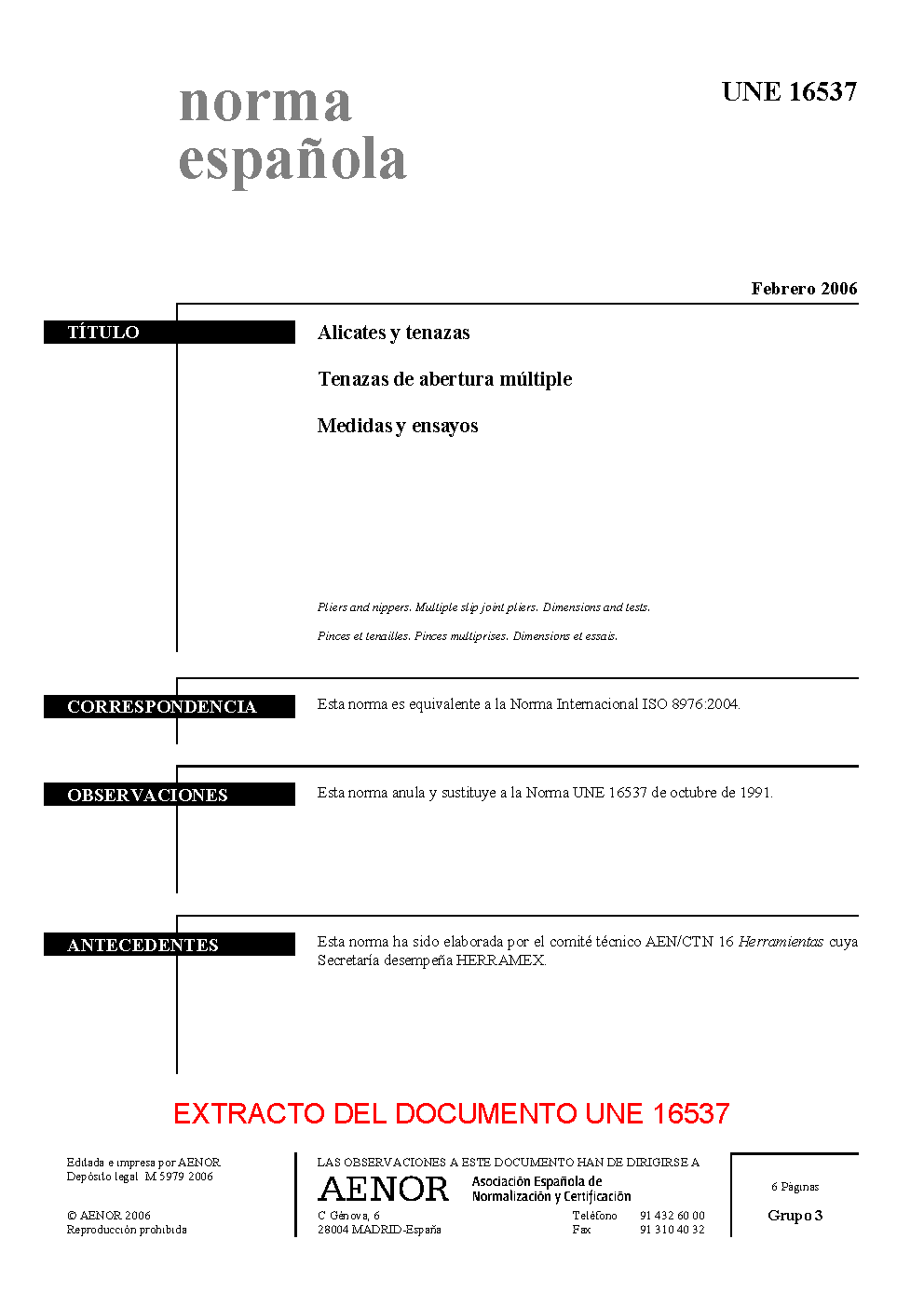 | Publisher | Asociacion Espanola de Normalizacion y Certificacion (AENOR) |