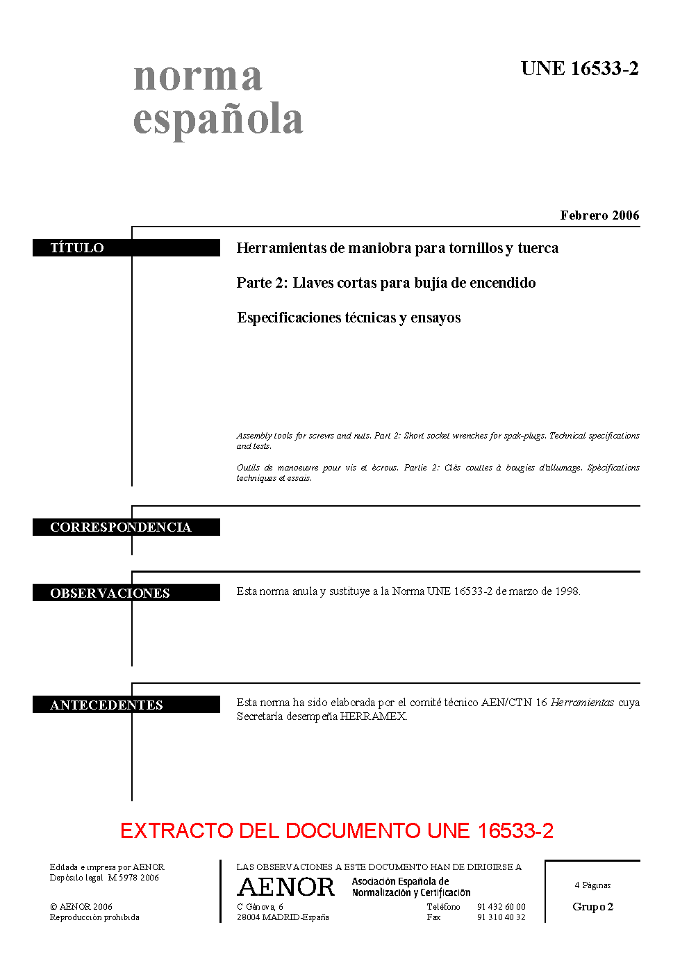 | Publisher | Asociacion Espanola de Normalizacion y Certificacion (AENOR) |